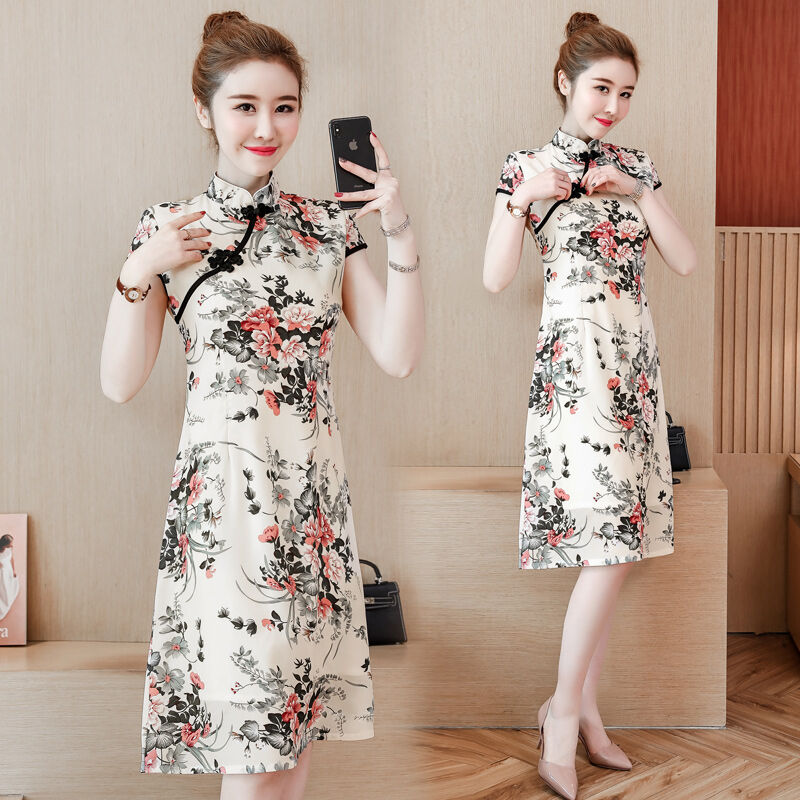 2022 Summer New Women's Chinese Style Cheongsam Dress – Mid-Length (Large Size)