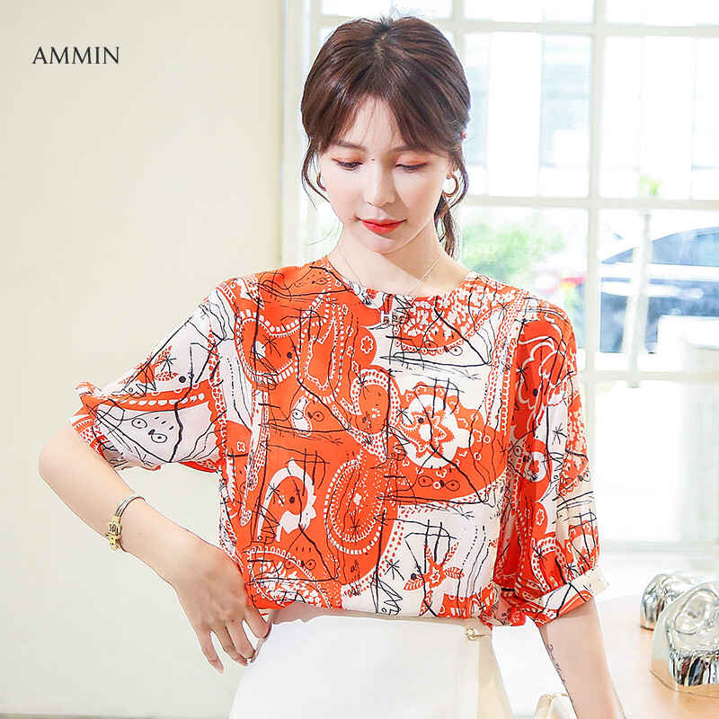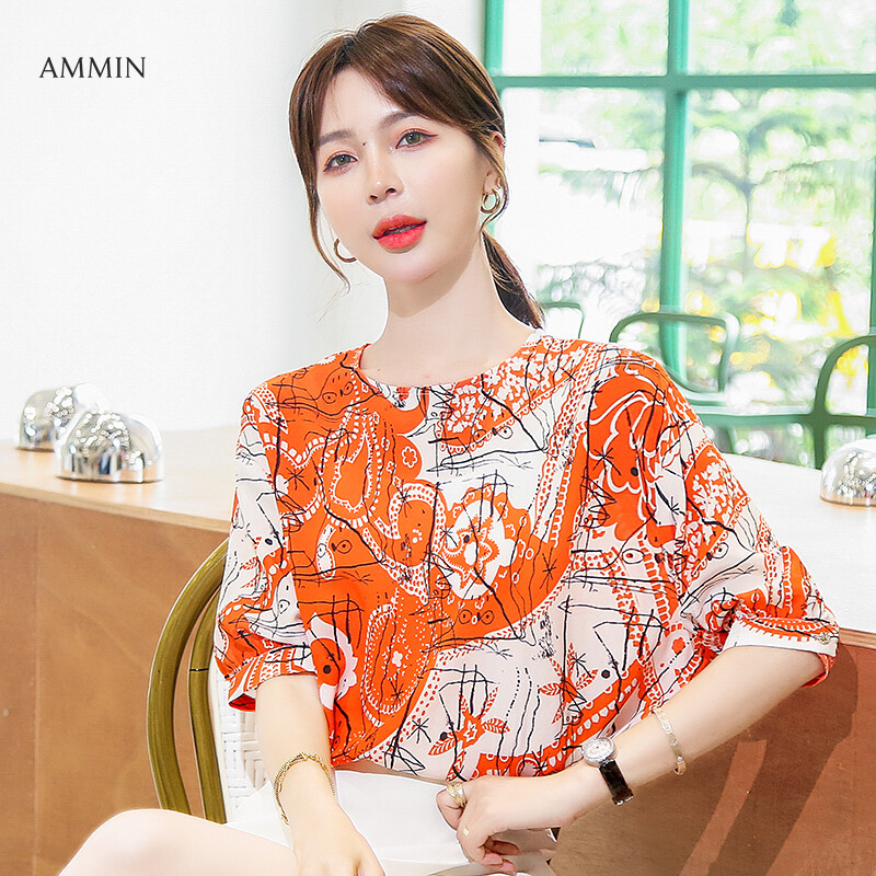 Complete your daily style with the AMMIN Abstract Print Chiffon Blouse, the perfect choice for a casual, chic, and comfortable look every day.