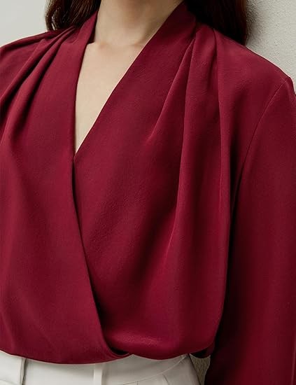 LilySilk Women's Pure Silk Blouse – Mulberry Silk Overlapping V-Neck Top