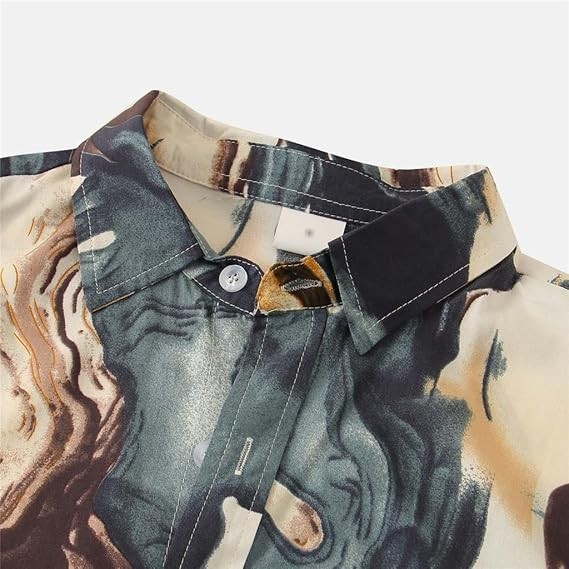 Men's Beach Shirt Patchwork Colour Block Print Short Sleeve Button Down Lapel Casual Vintage Shirt