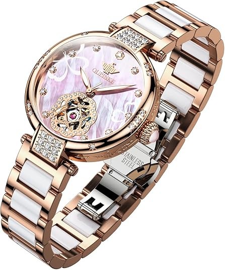Women's Automatic Watch: It adopts imported automatic movement, no battery is required, and it can support manual and automatic winding. It has 21 built-in synthetic ruby bearings to improve the winding efficiency and power reserve, so that the travel time is accurate and durable. The service life is up to 10 years.