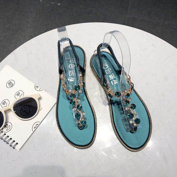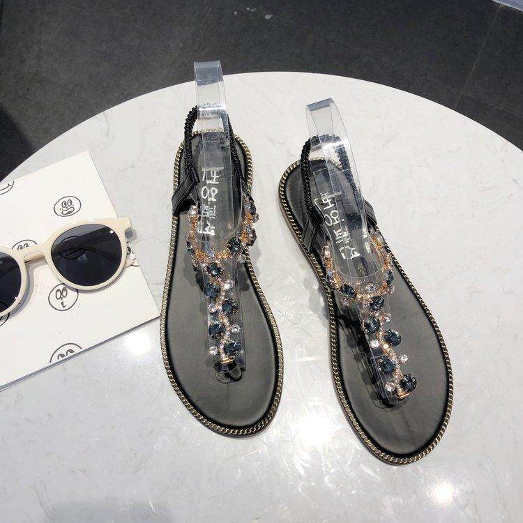 These women's flat-heeled sandals feature a modern and elegant design, offering the perfect combination of style and comfort. The split toe design adds a trendy touch, while the diamond detailing on the ankle adds a luxurious and feminine touch.