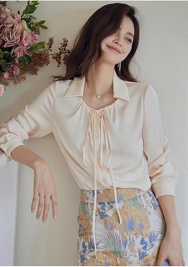 Casual Satin Shirt for Women in Autumn Lapel Shirt lace-up top